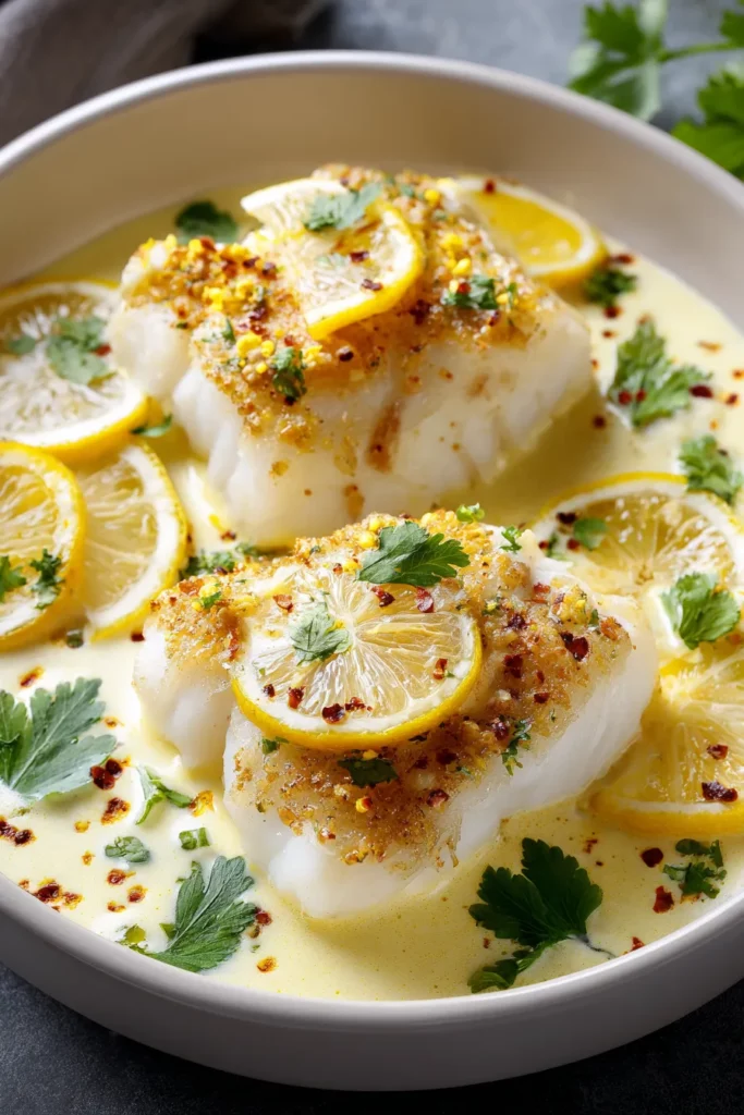 HOW TO MAKE BAKED COD WITH COCONUT LEMON CREAM SAUCE