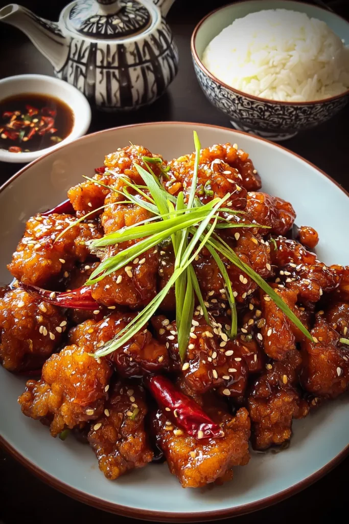 Crispy chicken bites are glazed in a sweet and savory honey sauce, perfectly balanced with ginger and garlic. Garnished with green onions, this dish is a delightful feast for the senses!
