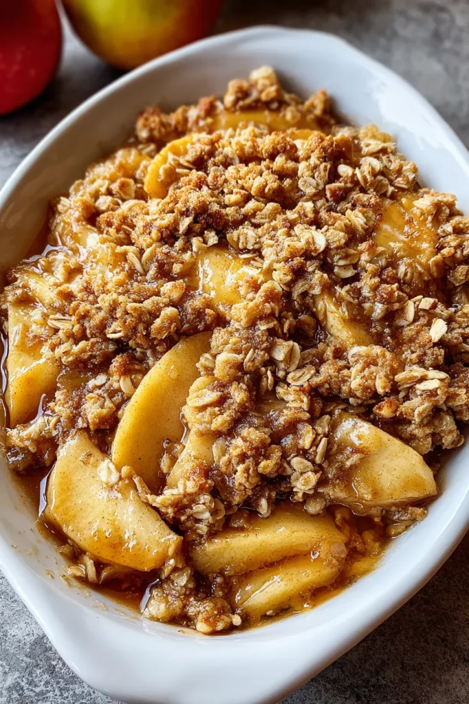 7. Bake for 30–35 minutes, or until the apple juices are bubbling and the topping is a rich golden brown. The center should be tender but not mushy.