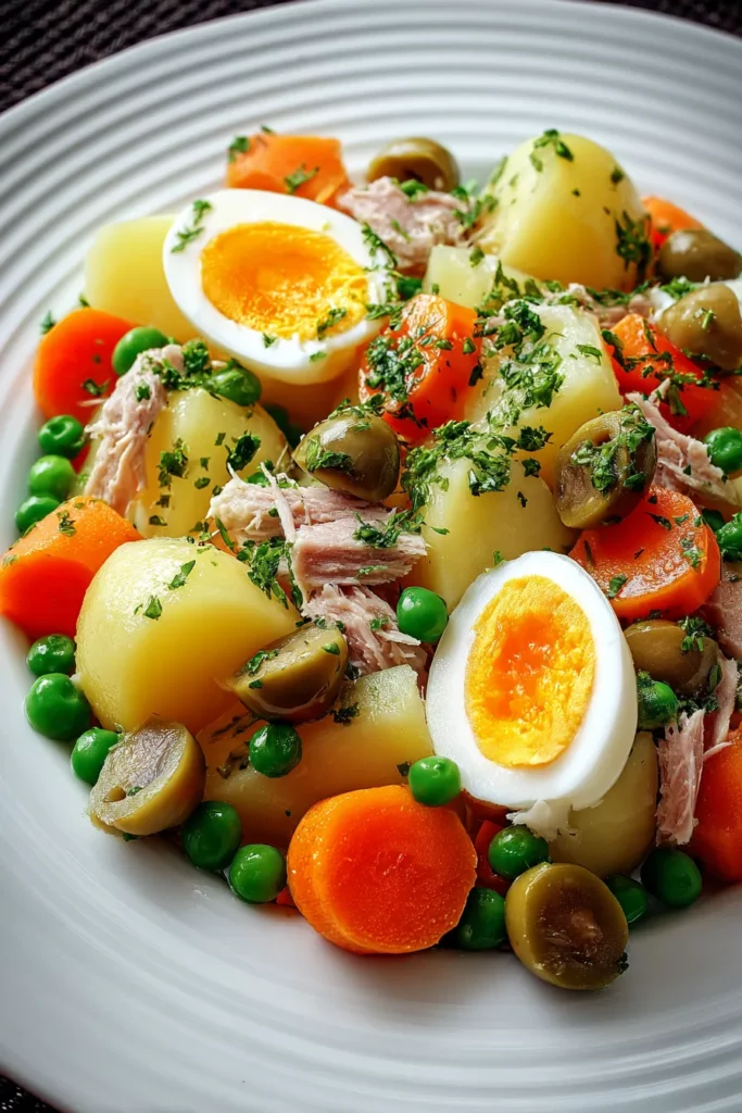 Below this article, you’ll find a FAQ section designed to answer common curiosities about substitutions, variations, and troubleshooting, so you can approach Ensalada de San Isidro with complete confidence. If any step ever feels unclear—maybe your vegetables seem too soggy or you’re curious about lighter dressing alternatives—check those frequently asked questions first. And of course, I’d love to hear how your salad turned out! Please leave a comment with your results, questions, or any creative twists you tried, whether you swapped chicken for tuna or experimented with Greek yogurt instead of some mayonnaise. Your feedback helps us refine and share even more delicious variations. Cooking is all about community and conversation, and I’m here to help if you need troubleshooting tips or simply want to celebrate your culinary success. Thank you for inviting this festive Spanish salad into your kitchen—I can’t wait to hear your stories and see how Ensalada de San Isidro becomes part of your next gathering.