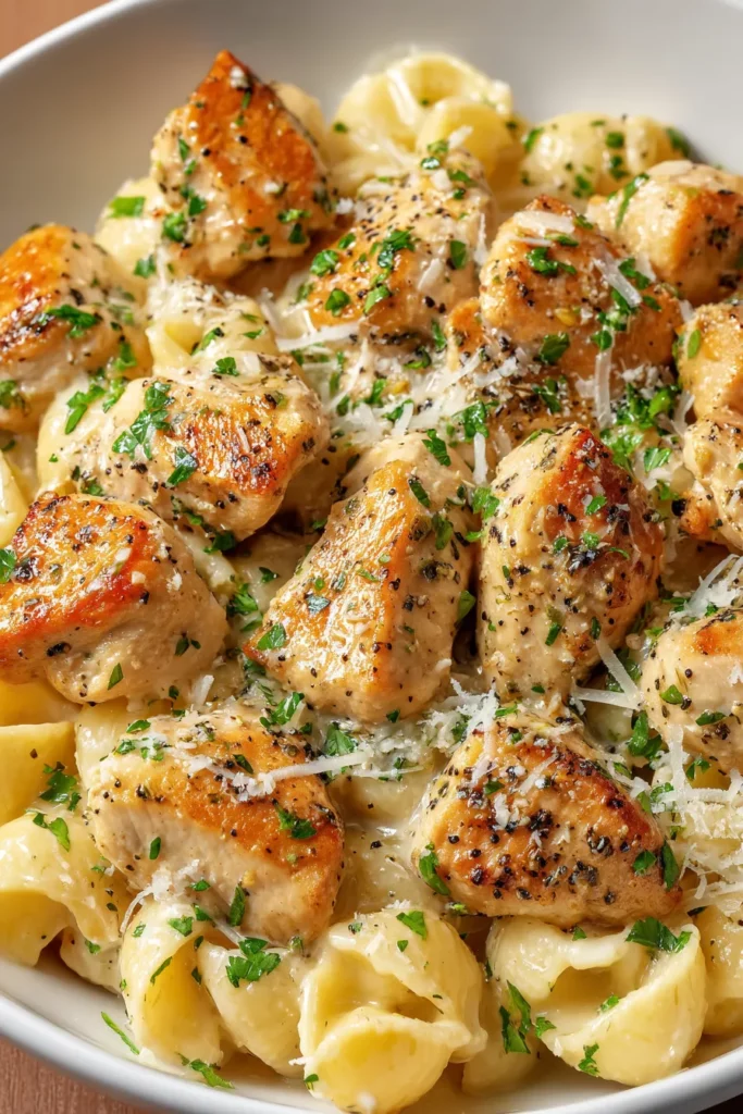 Congratulations—you’ve now mastered a recipe that seamlessly combines succulent chicken bites, aromatic garlic butter, and a luxuriously creamy sauce with your favorite pasta. We’ve covered everything from selecting the right ingredients to perfecting each step of the cooking process, and even given you tips on serving, storing, and reheating for maximum enjoyment. Keep this article printed or saved so you can refer back to it whenever you’re planning your next cozy dinner or need a quick yet impressive weeknight meal. Don’t forget that a FAQ section follows below, where you can explore answers to common questions about ingredient swaps, dietary adjustments, and more.