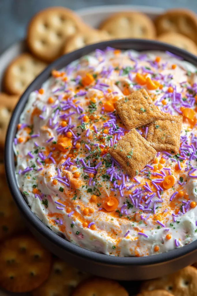 When it comes to presenting Halloween Dunkaroo Dip at your gathering, the fun is in the details. Turn your snack table into an Instagram-worthy display by playing with heights, colors, and themed accents. Whether you’re setting up a full buffet or a cozy family movie night, these suggestions will help you serve up the dip in style and keep your guests coming back for more.