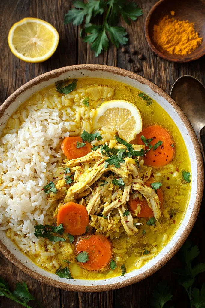 Lemon Ginger Turmeric Chicken and Rice Soup