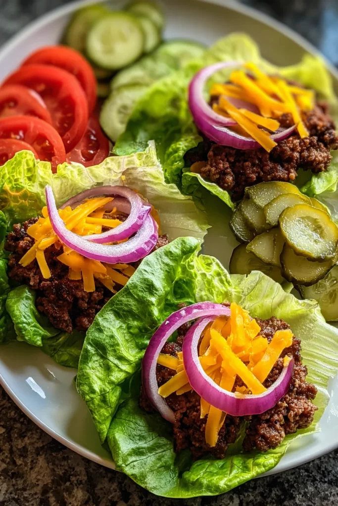 Beyond being downright delicious, these wraps are an easy recipe for busy weeknights or weekend cookouts. Prep time is a breezy 15 minutes, cooking wraps up in about 10 minutes, and a quick 2-minute rest lets flavors meld and juices settle. Clocking in at around 350 calories per serving, they’re the ideal guilt-free meal that doesn’t skimp on flavor. Even cooking beginners can nail this recipe—it’s rated a beginner-friendly difficulty level, and with clear, step-by-step guidance, you’ll feel like a grill master in no time. The fresh crunch of the lettuce plays off the warm, juicy beef patties in perfect harmony, creating a contrast that’s as fun to eat as it is satisfying. Trust me, once you taste how these wraps burst with flavor, you’ll wonder why you ever needed a bun at all.