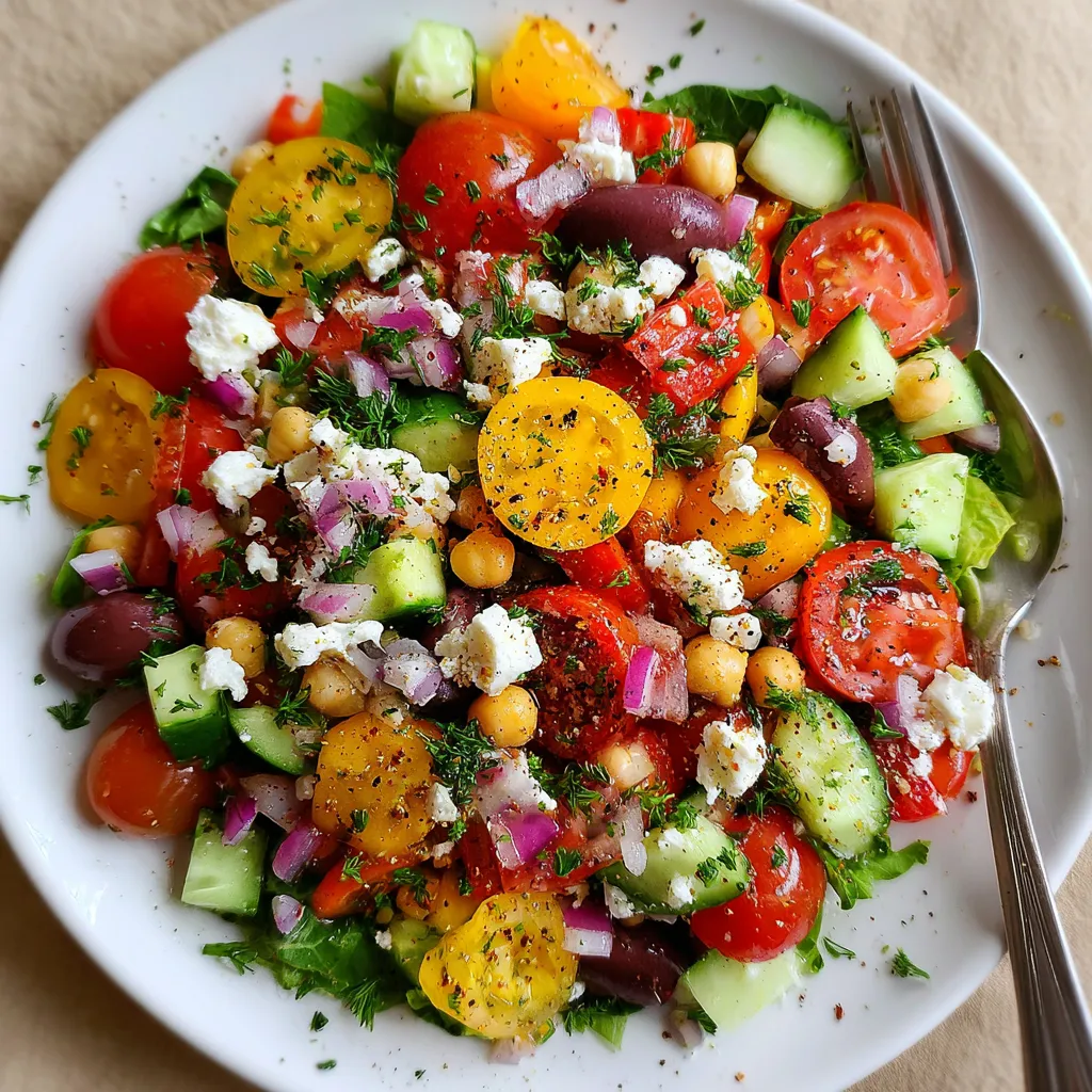 Yes. Simply omit the crumbled feta cheese or substitute it with a plant-based feta alternative. The salad’s bold flavors from olives, vinegar, and herbs shine through without dairy.