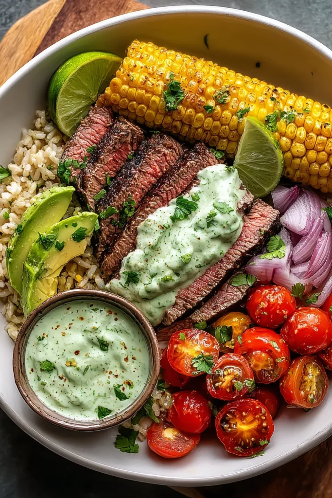 I still remember the first time I whipped up this bowl for a casual weekend barbecue. The air was filled with laughter, and within minutes, everyone was reaching for seconds. The steak’s smoky crust played off the sweet corn in perfect harmony, while the creamy cilantro sauce—bright with lime and just a hint of honey—elevated each bite. Pair it with a crisp salad or keep it simple on its own, and you’ve got a meal that feels both fresh and indulgent. With about 20 minutes of prep, 30 minutes of cooking, and a short 5-minute rest, you’ll be sitting down to a wholesome, balanced bowl in under an hour, clocking in around 600 calories of pure joy.